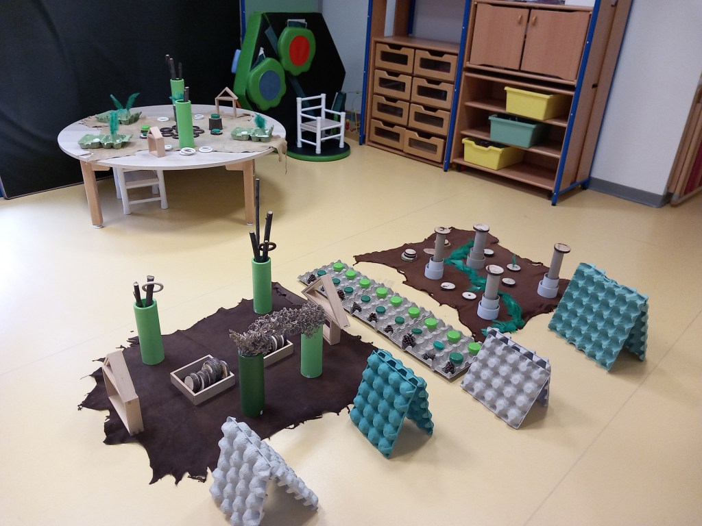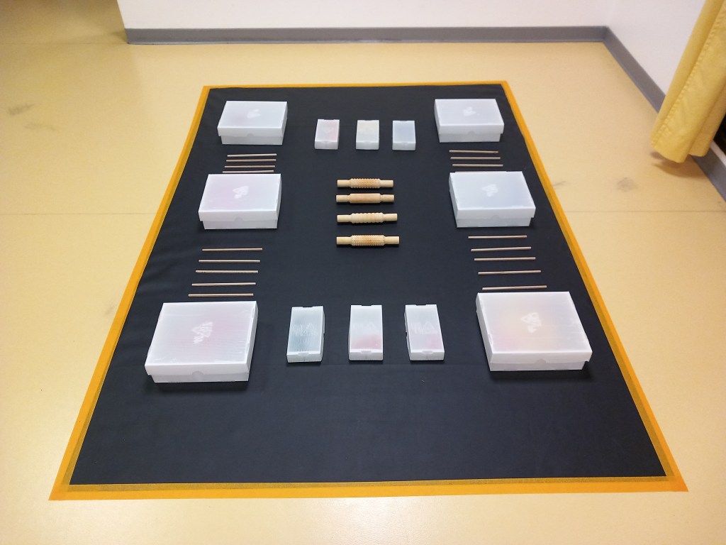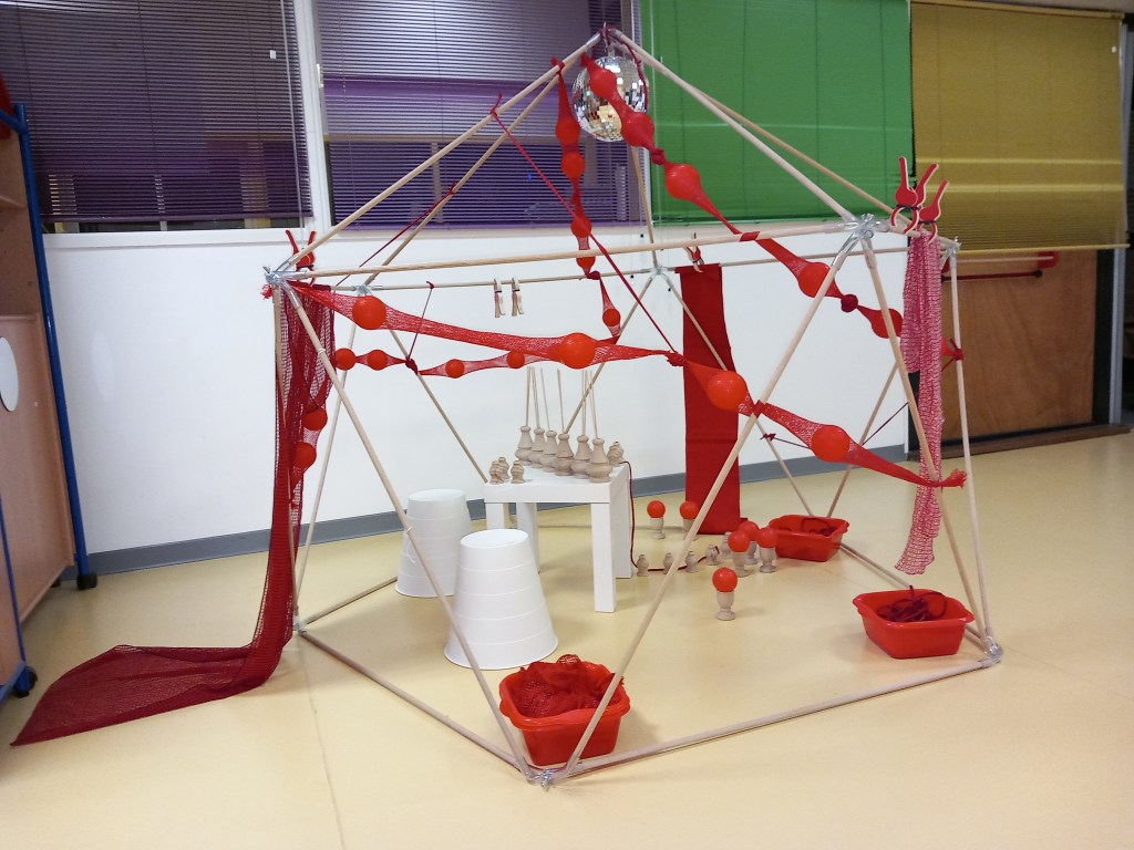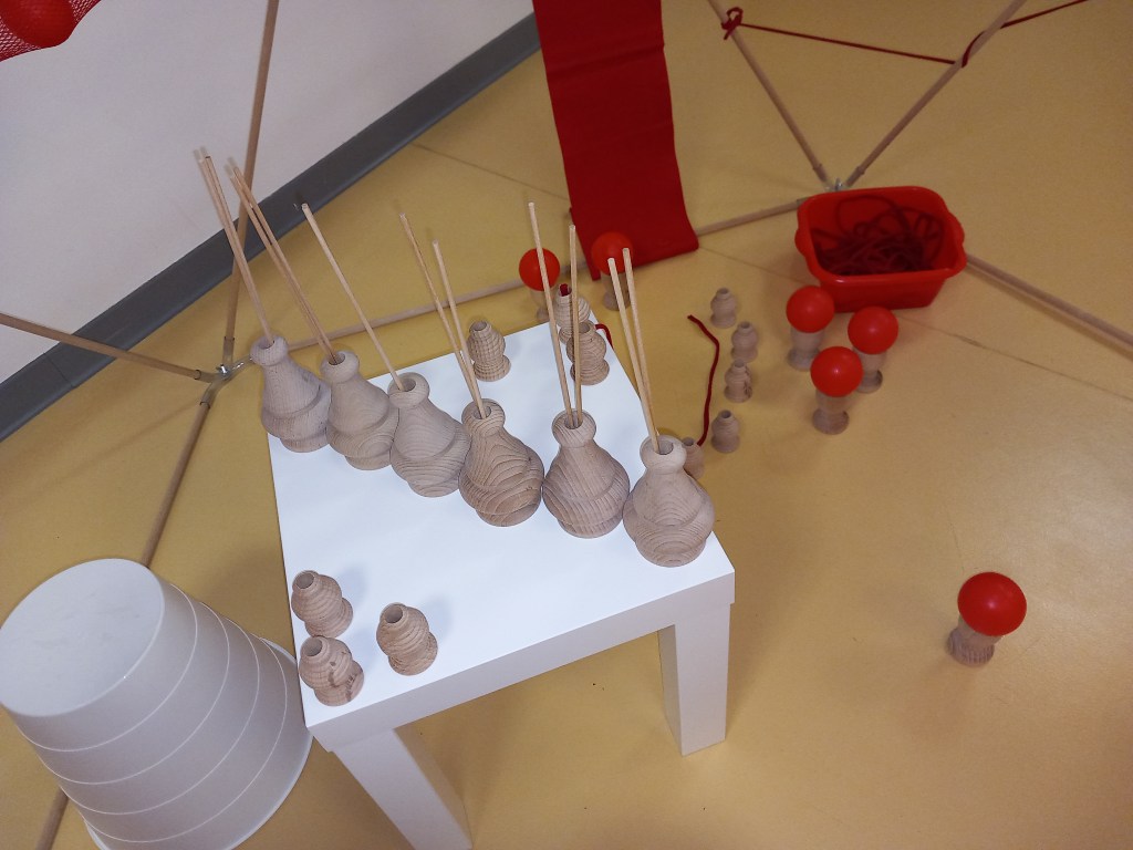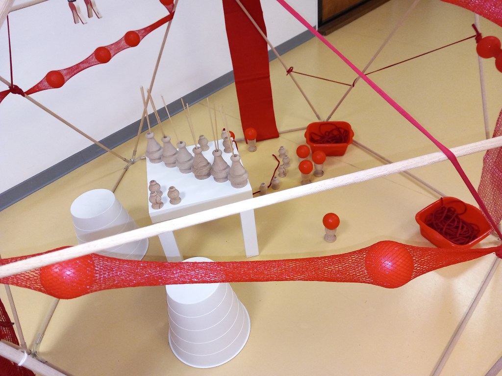 L’après-midi, on passe à la réalisation. Par petits groupes, chacun-e propose son dispositif de libre exploration et le présente aux autres. Quelques images des créations ci-dessous.