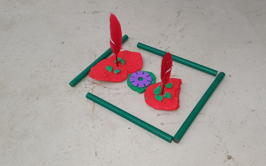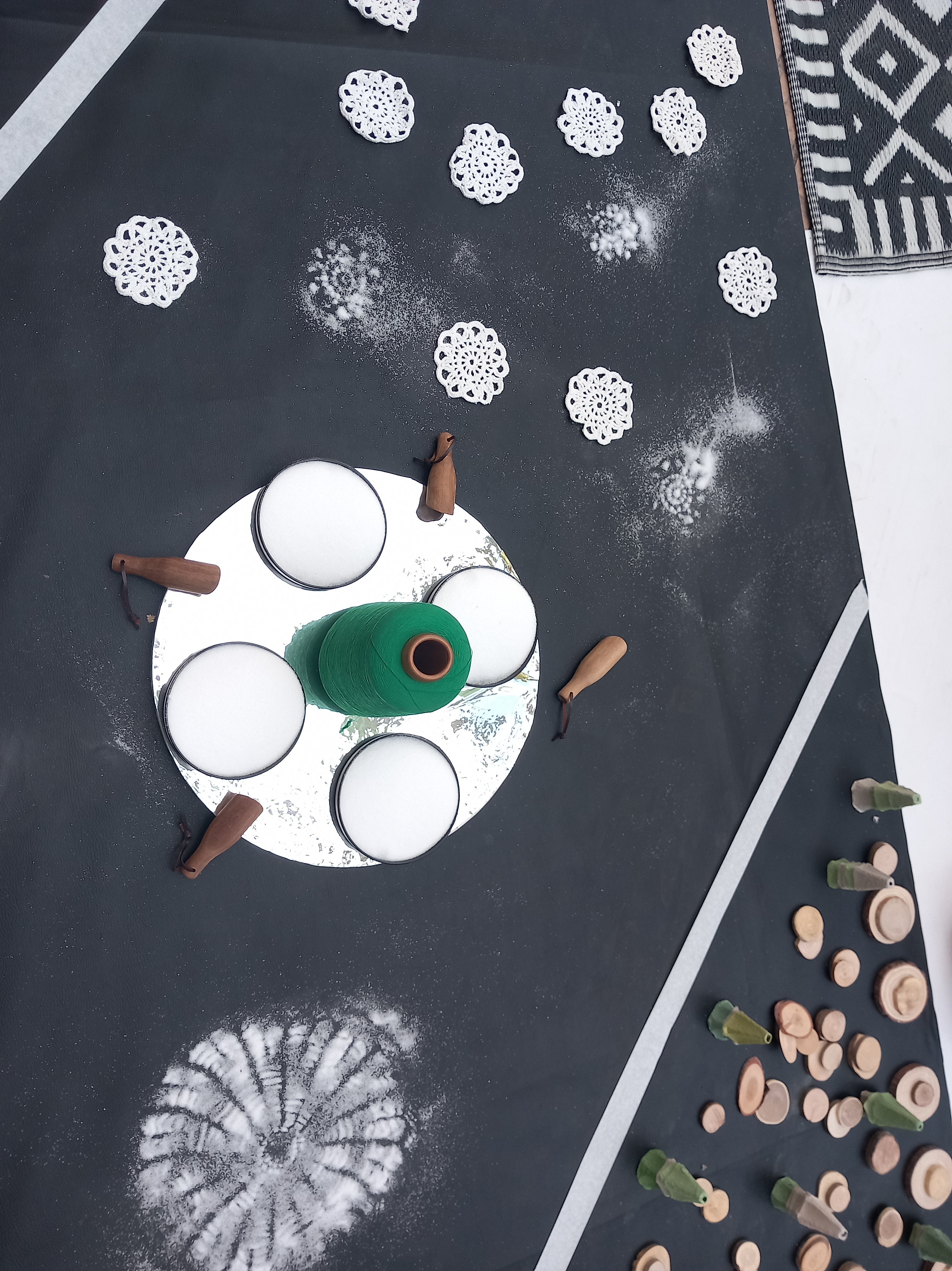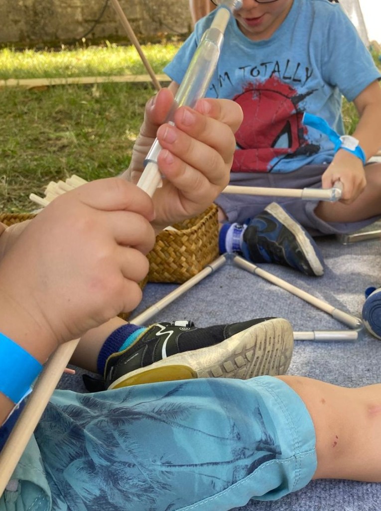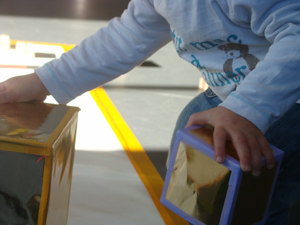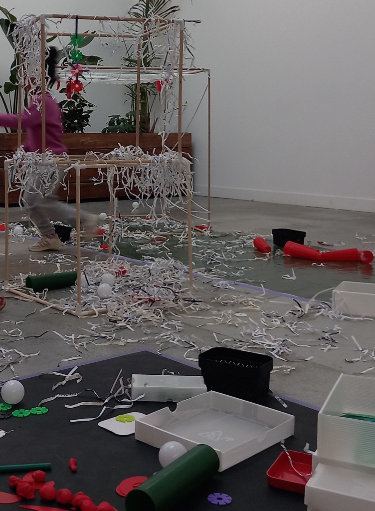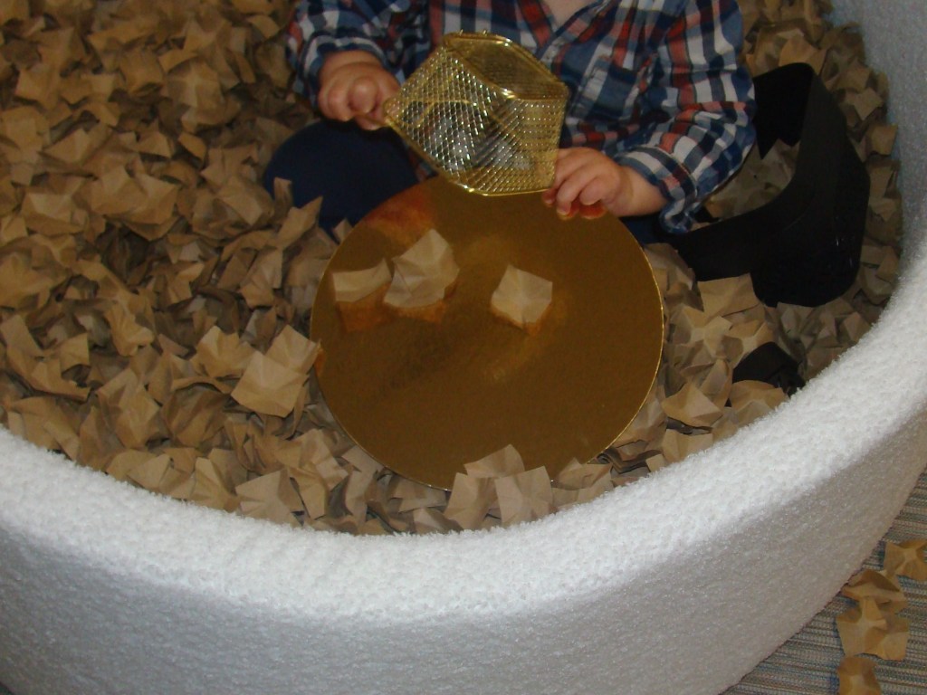 L’artiste SpY est une des sources d’inspiration qui a donné lieu à ce dispositif : utiliser des éléments de la vie de tous les jours (ou presque) pour produire du mouvement et des sons. S’isoler un peu pour mieux entendre, pour assembler et créer des effets sonores, ou juste écouter. Les objets comme les matières offrent des possibilités étonnantes ! On les livre ici à l’exploration des enfants. On peut s’autoriser à les découvrir, les faire vibrer, rouler, crisser… On peut aussi en faire tout autre chose.