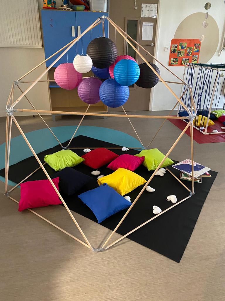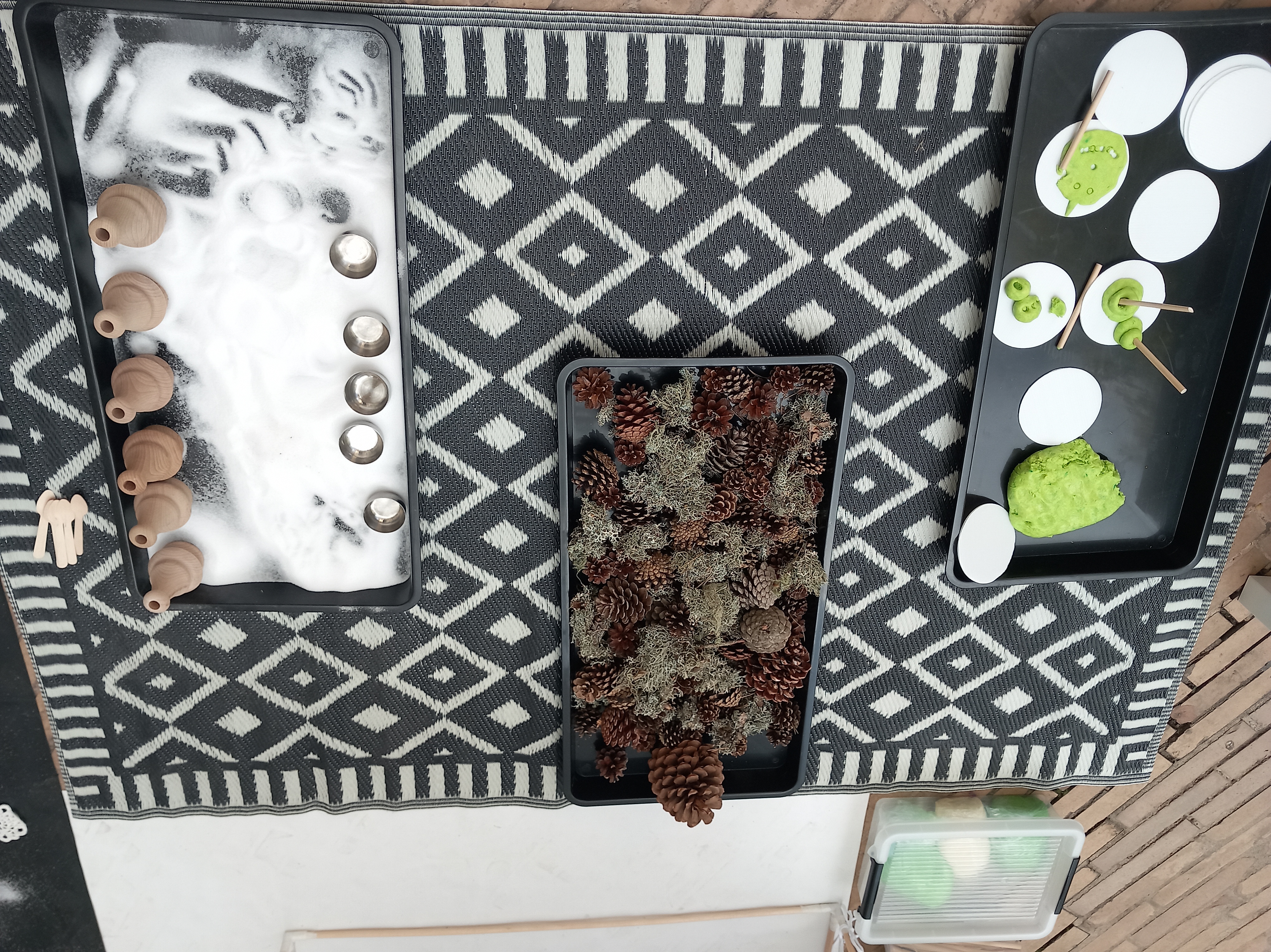 Avant la création de notre association (2022/2024), nous avons proposé aux enfants de notre crèche des installations régulières, pour ainsi dire, au quotidien. Nous avons commencé avec le matériel personnel dont nous disposions déjà. Puis, petit à petit, avec l’aide des familles et de la récup’ qu’elles nous amenaient, nous avons poursuivi notre chemin. Voici quelques-unes des installations que nous avons réalisé. Sur la page de blog figurent d’autres dispositifs en EAJE qui émaillent encore aujourd’hui notre quotidien.